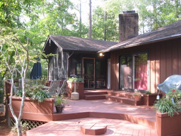 The unique 3-level floor plan combines convenient main level living with desired privacy suites. The great room includes the living room, newly remodeled kitchen with bar and dining areas in an open setting with vaulted ceilings.  This set up makes entertaining easy and relaxing an essential part of your stay. Enjoy your favorite movie, golf tournament, or TV program on the 55 inch TV, while seated around the fireplace on sectional sofa. Or step outside to enjoy the mild North Carolina weather on the furnished screened in porch. The game room also on the main level will bring out your competitive spirit complete with a pool table and foosball table.