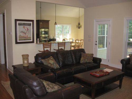 The living room makes for easy entertaining with attached dining room and 50 inch HDTV. Foosball, shuffleboard and ping pong tables are available for your use.